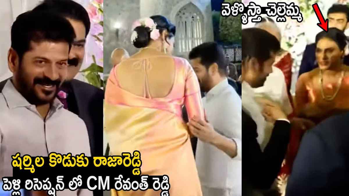 CM Revanth Reddy : ఆంధ్రప్రదేశ్ రాష్ట్ర కాంగ్రెస్ పార్టీ అధ్యక్షురాలు వైఎస్ షర్మిల కుమారుడు రాజా రెడ్డి మ్యారేజ్ రిసెప్షన్ ఇటీవల ఘనంగా జరిగింది. రాజా రెడ్డి-ప్రియల మ్యారేజ్ రిసెప్షన్ శంషాబాద్ లోని ఓ ప్రైవేట్ హోటల్లో గ్రాండ్గా జరగగా, ఈ వేడుకకి చాలా మంది ప్రముఖులు హాజరయ్యారు. కాంగ్రెస్ పార్టీ అధ్యక్షుడు మల్లికార్జున్ ఖర్గే, ఆ పార్టీ ప్రధాన కార్యదర్శి కెసి వేణుగోపాల్ ప్రధాన అతిథులుగా హాజరయ్యారు. తెలంగాణ ముఖ్యమంత్రి ఎ. రేవంత్రెడ్డి, ఉపముఖ్యమంత్రి మల్లు భట్టి విక్రమార్క, రాష్ట్ర మంత్రులు పొంగులేటి శ్రీనివాస్ రెడ్డి, జూపల్లి కృష్ణారావు, కోమటిరెడ్డి వెంకట్ రెడ్డి , ఏఐసీసీ తెలంగాణ ఇన్ఛార్జ్ దీపదాస్ మున్షీ, పలువురు కాంగ్రెస్ నేతలు హాజరయ్యారు.