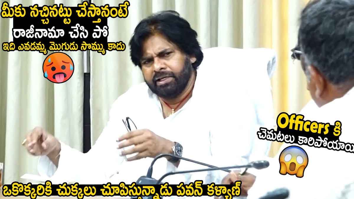 పంచాయతీలకు కేంద్రం ఇచ్చిన నిధులు ఎందుకు మళ్లించారు? సచివాలయాలు పంచాయతీల్లో భాగం కాదా ఉపాధి వేతనాల చెల్లింపుల్లో జాప్యానికి కారణమేంటి? అంటూ సూటిగా ప్రశ్నించారు.ఉపాధి హామీ పనుల్లో దుర్వినియోగమైన నిధుల రికవరీలో ఎందుకు వెనుకబడ్డారు? ఉపాధి కూలీలకు వేతనాల్లో చెల్లింపుల్లో జాప్యానికి కారణం ఎవరని నిలదీశారు. పవన్ నుంచి ఎదురైన ప్రశ్నలతో ఉక్కిరిబిక్కిరైన అధికారులు సరిగా సమాధానాలు చెప్పలేక నీళ్లు నమిలారు. ఈ సమయంలో మళ్లీ కలగజేసుకున్న పవన్, తాను లేవనెత్తిన అంశాలపై మరోసారి సమగ్రంగా చర్చిద్దామని, సంసిద్ధులై ఉండాలని సూచించారు.